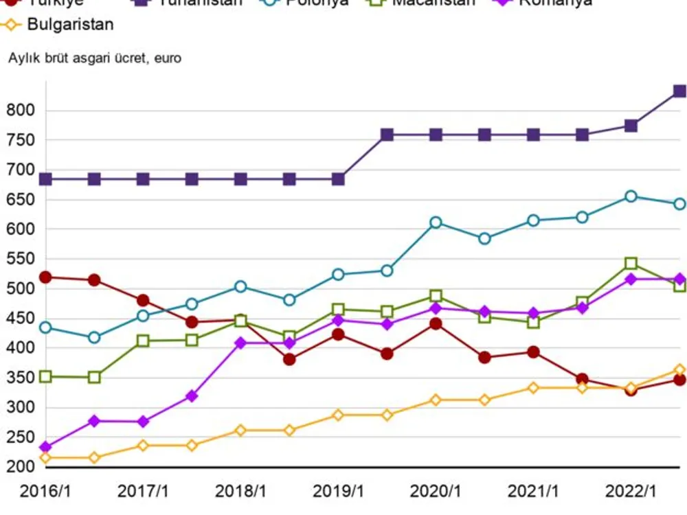 Türkiye’deki asgari ücret 2015 yılına kadar pek çok Doğu Avrupa ülkesinin üzerindeydi. Fakat o tarihten sonra tablo tersine döndü.